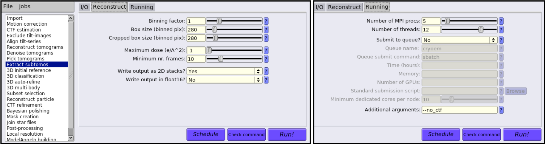 --beta 0.025. We recommend this setting as a starting point for all tilt series experiments!--dose-per-tiltand--angle-per-tiltare used for dose exposure correction. The default value of--angle-per-tiltis 3 degrees and is left off of the example command.